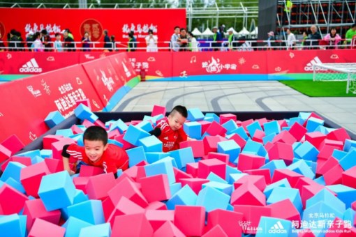 除此之外,阿迪达斯还在比赛终点为孩子们打造一个近4000㎡的欢乐“运动嘉年华”,并设置了篮球、足球、平衡车、皮划艇、冰壶等多种运动项目供小朋友们体验,现场欢声笑语、趣味十足。2018华夏幸福北京马拉松阿迪达斯亲子跑以“亲子互动”为出发点,以奔跑为契机,又用多种“寓教于乐”的方式让孩子们享受运动带来的无穷乐趣。